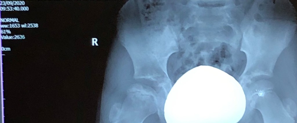 The below scans show his right (bad) hip joint compared to his left (good), and a comparison view of his right hip between Nov 2019 and September 2020. Hard to see with the untrained eye, but combined with what the Consultant tells us, we believe we can see it looking more dense, more rounded, and less black stuff!